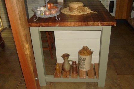 A few remaining Blackbutt floorboards from the attic bedrooms are used for the drawer fronts, (complete with hidden compost bin drawer) and the ornament shelf.